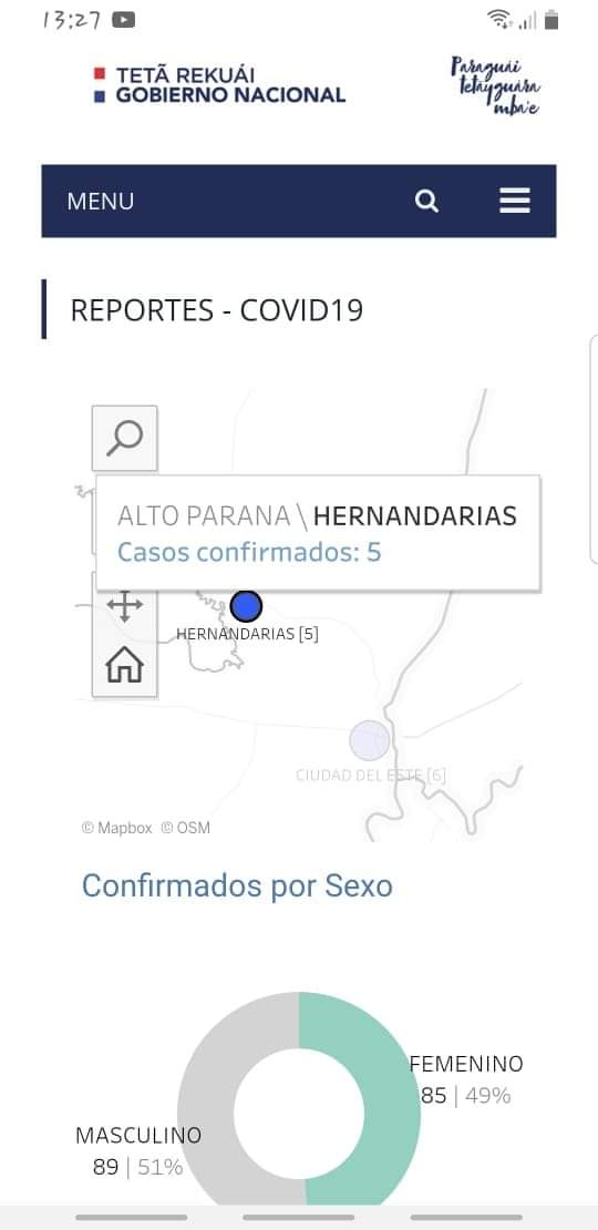 Desde la Décima Region Sanitaria confirman que existen 5 casos de personas con resultado positivo del COVID-19 en la ciudad de Hernandarias, pero son personas que vinieron del exterior y se encuentran en cuarentena en los refugios habilitado para el efecto. También se mencionó 6 casos Positivos en Ciudad del Este.