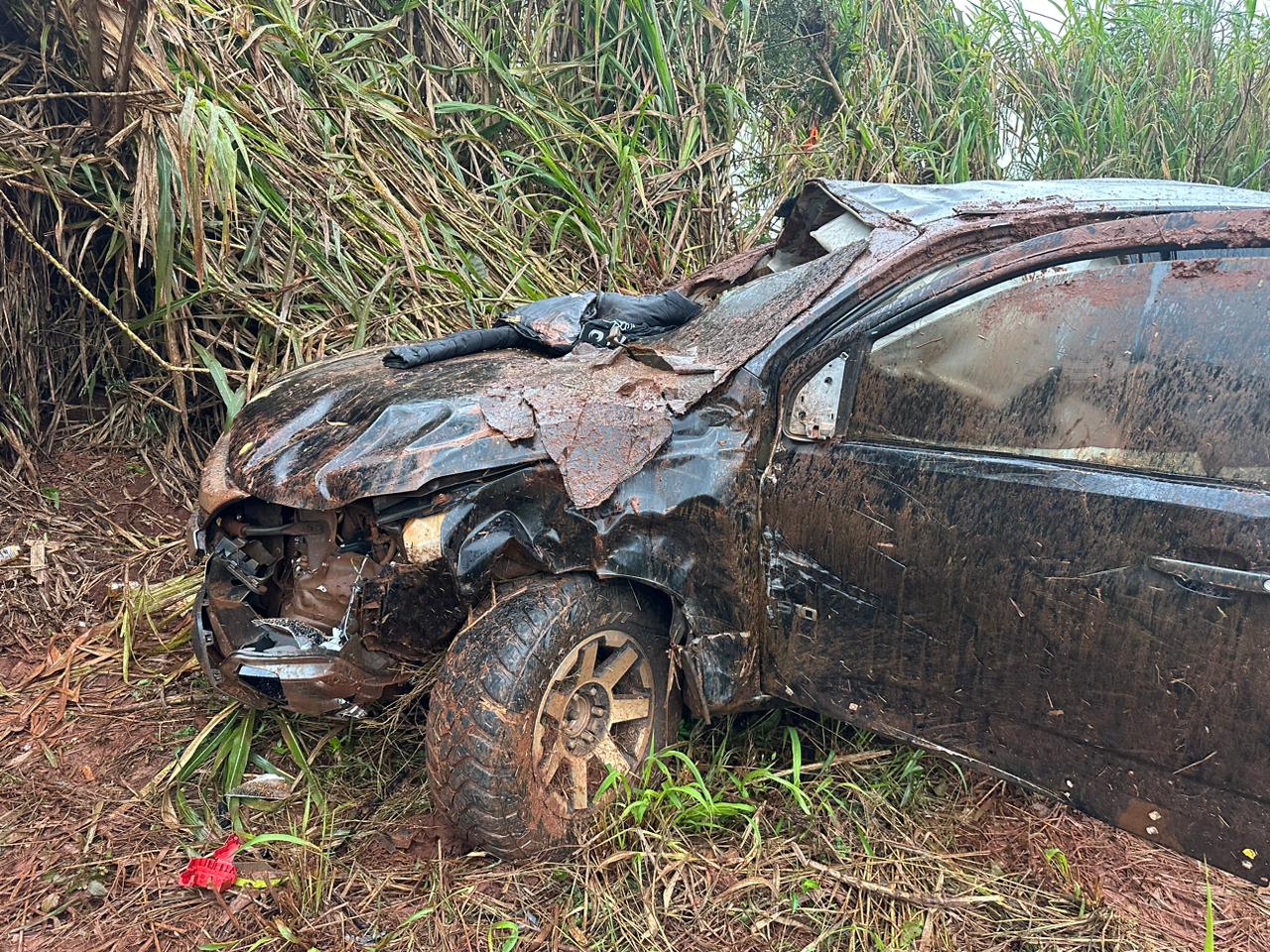 El Vehículo Tipo Camioneta marca Chevrolet, modelo S 10, año 2022, color negro, chapa Nº AAJA 560 Py., guiado por su propietario Anderson Germano Da Silva, brasileño, 34 años, domiciliado en la Colonia Arroyo hú Nueva Conquista quien sufrio lesiones, a igual que sus acompañantes  quien dicen llamarse Maria Gabriela Mesias  Da Silva y Claudia Dos santos, había perdido el control de su Vehículo parando alcostado de la Ruta.