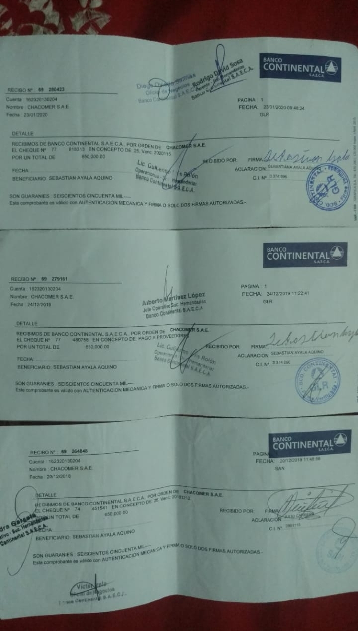 Sebastián en una entrevista con éste medio relató que trabaja más de 13 años en la empresa Chacomer cobrando mensualmente 650.000 Gs y que había solicitado su liquidación al Gerente y fue negado.