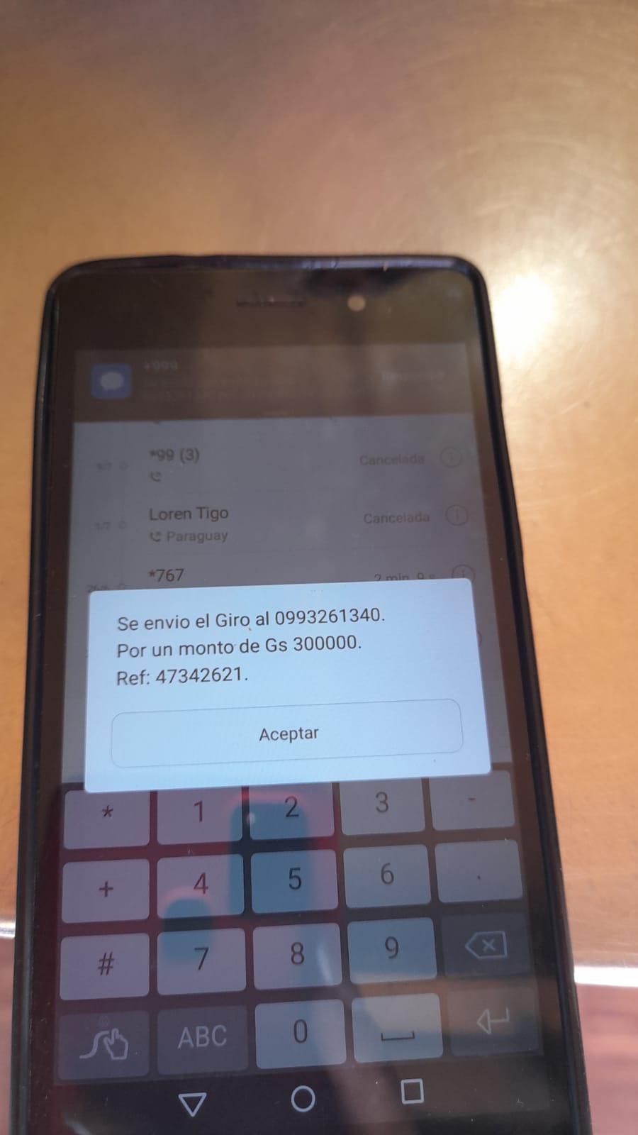 En otro caso la víctima Casco de Hernandarias, también llegó tener la promesa de parte de Perla quien llegó hacer giro en el número de terminación 1340 en un monto de 1.200.000Gs con el fin de elevar la faja de Calificación.