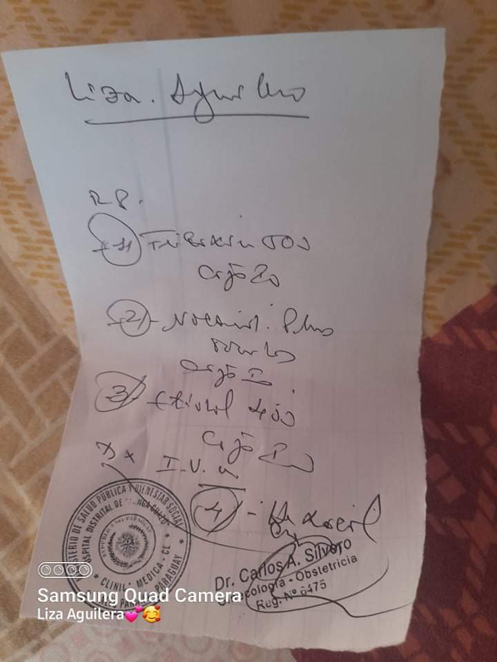 Farmacia Santa Cruz ubicado frente al Hospital Distrital de Minga Guazú, se equivocó al dar un medicamento a una cliente , pues el medicamento equivocado había causado daños secundarios a la misma