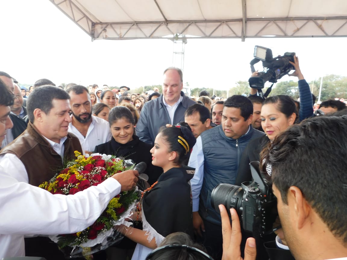 En el Acto de Inauguración, vecinos del barrios Niño Jesus realizaron la entrega de un regalo al presidente Horacio Cartes como tambien el Intendente Municipal Ruebn Rojas realizo la entrega de un Pergamino de Gratitud, » Te entregó este reconocimiento por todo lo que hiciste por la ciudad de Hernandarias mencionó Rojas.