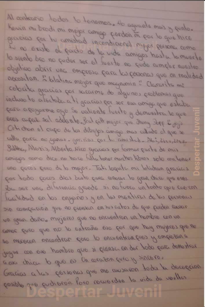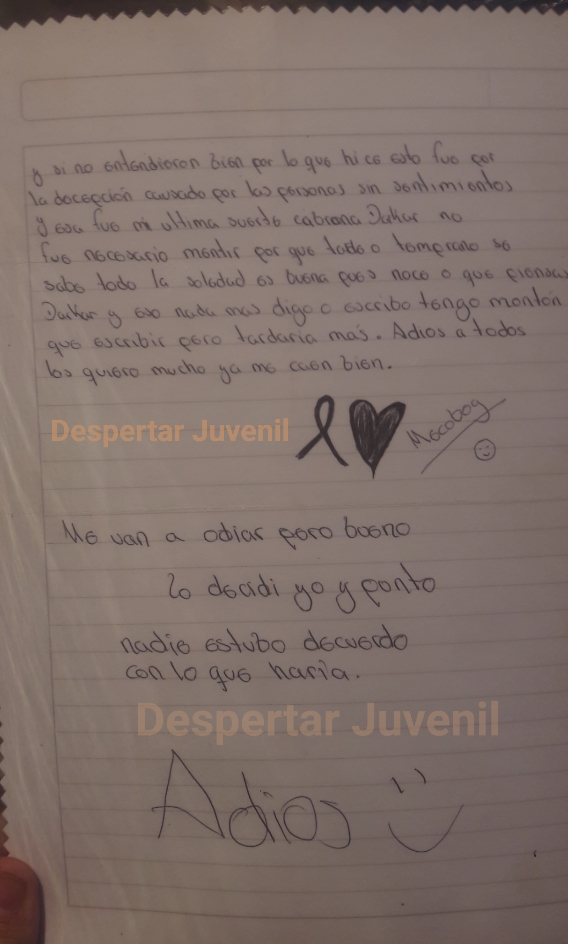 Despertar Juvenil (JG) en conversación con la madre Graciela Diana de Coronel menciona que encontraron una carta que su hijo dejo antes de realizar el hecho.