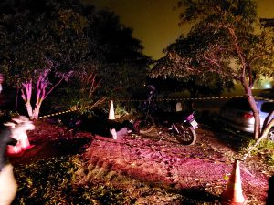 Según parte Policíal, Personal de la Marina escucharon un disparo de arma de fuego, momento que realizaron un rastrillaje por la zona encontrando un cuerpo sin signos de vida alcostado de una Motocicleta quienes   dieron aviso a la Policía Local.