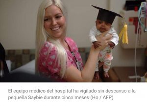 La familia de Saybie desea permanecer en el anonimato, por eso no trascendieron otros detalles de la pequeña. Pero sí se confirmó que se la llevaron del hospital en muy buenas condiciones de salud y seguirá su recuperación en su casa. Fuente La Vanguardia