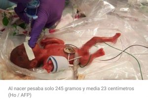 Con solo 245 gramos y 23 semanas y tres días de gestación, Saybie se ha convertido en la bebé más pequeña del mundo que ha nacido con vida. Vino al mundo en San Diego (California, EE.UU.) y a pesar de todos los malos pronósticos ha logrado sobrevivir. Nació tan prematura que ha necesitado estar hospitalizada cinco meses para controlarla las 24 horas, ahora le acaban de dar el alta y ya pesa dos kilos.