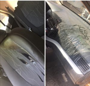 Minutos después llegó la hija de la denunciante Dahiana Benitez quien estaba al mando de un automóvil Kia Picanto y que el vecino Diego quien estaba en la esquina de la casa donde al ver que llegaba Dahiana Benitez salió al paso y derramó aceite en el interior del vehículo.
