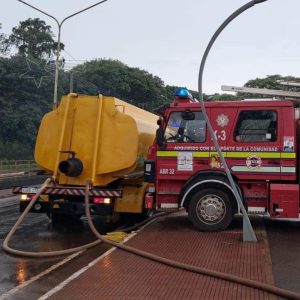 Más de 2.027.464 litros de agua hasta la noche de ayer, en el segundo día de combate al incendio del edificio en Ciudad del Este!