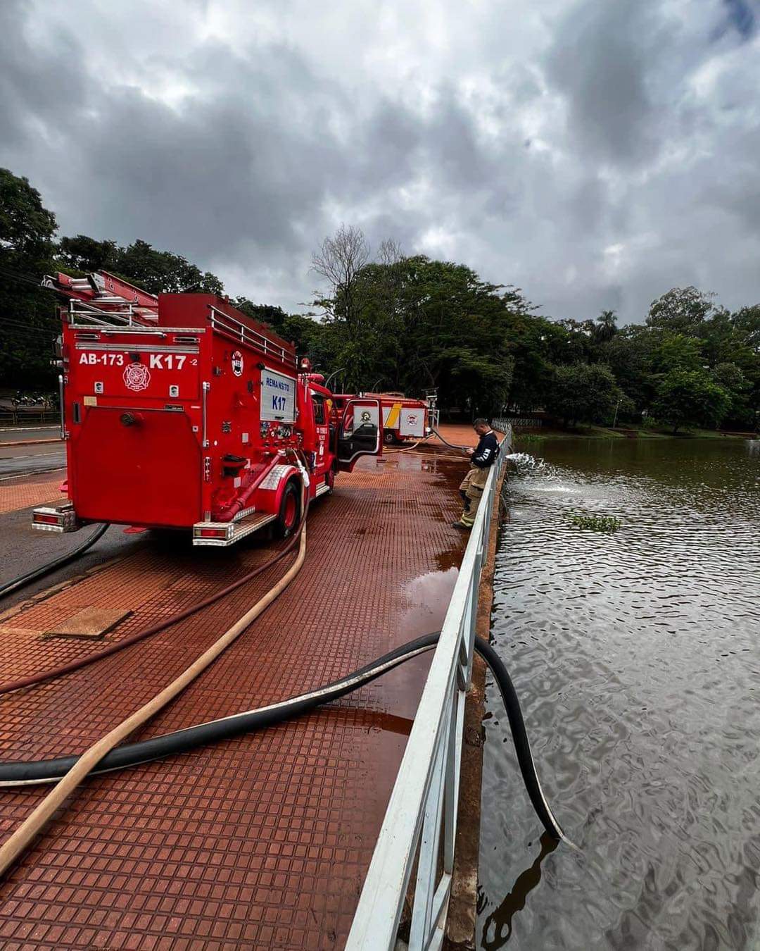 Más de 2.027.464 litros de agua hasta la noche de ayer, en el segundo día de combate al incendio del edificio en Ciudad del Este!