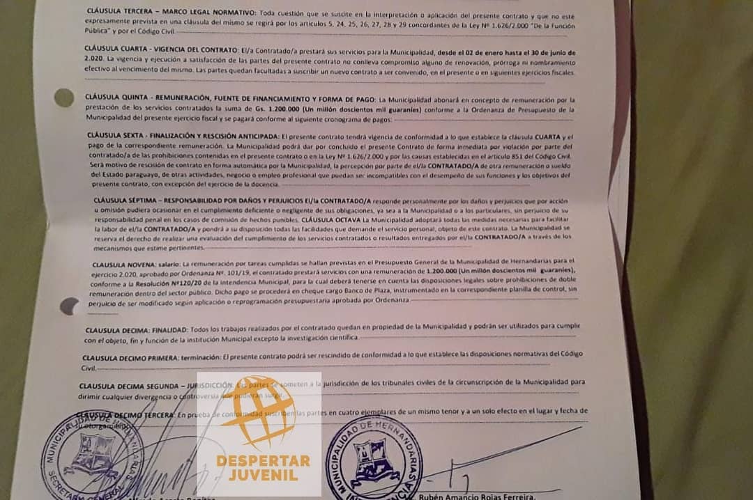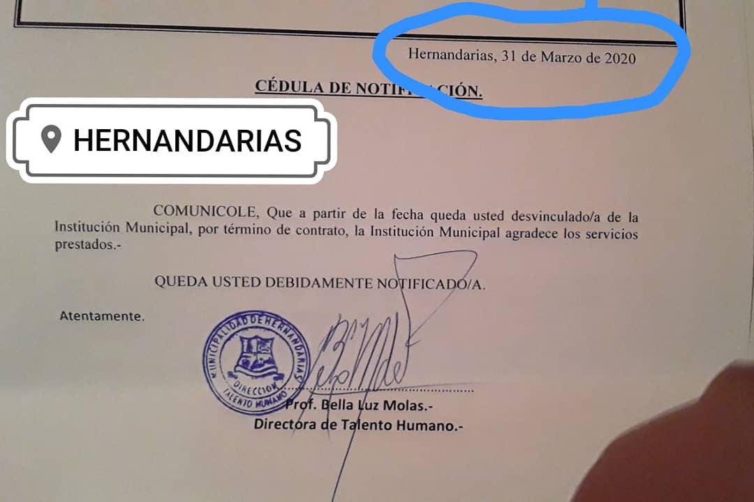 Los documentos muestran que varios funcionarios que ni sueldo mínimo tenian fueron liquidados y no pagados los meses trabajados. No cobraron solo fueron notificado y desvinculados.