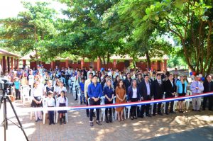 Para hacer oficial y cortar la cinta inaugural tuvo lugar un acto protocolar, con presencia de toda la comunidad del km 9 Acaray, padres, vecinos, estudiantes y el plantel educativo. Así también tuvo lugar un momento artístico y cultural ofrecido por los alumnos de la institución en conmemoración a los resultados realizados, los ejecutivos y directivos que estuvieron presentes por parte del Shopping Paris fueron la señora Sonia Jang, Elizabeth Kim y el señor John Park.