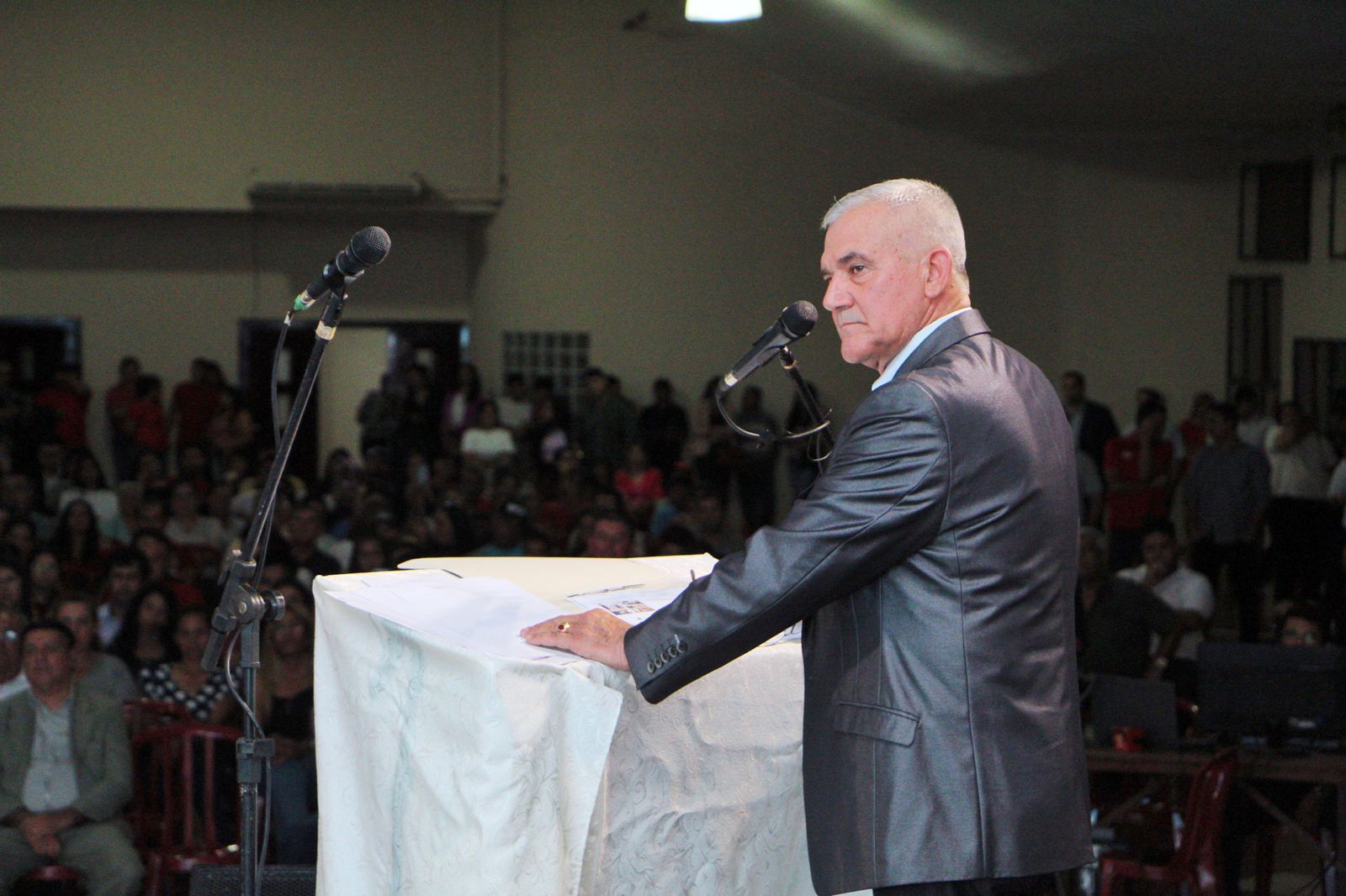 El acto se llevó a cabo en el salón teatro municipal que se encontró repleto a pesar de la lluvia que caía.