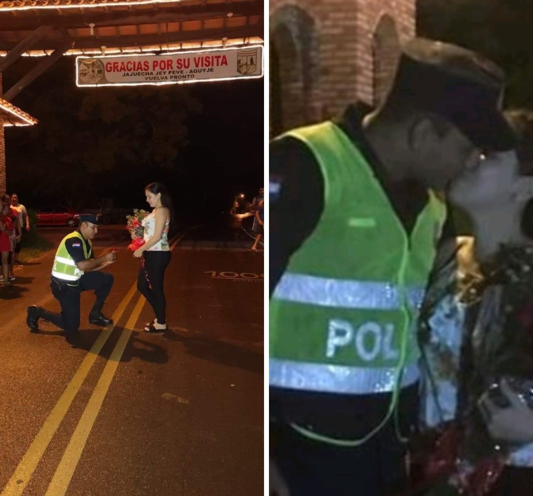 Esta escena se desarrolló durante la noche de este viernes en el acceso a la ciudad de Atyra, departamento de Cordillera. El romántico de esta historia es Luis Carlos Paez Candia, un efectivo de la Policía Nacional, quien con la complicidad de familiares preparó el ambiente para que la propuesta de matrimonio a su amada Luz Liliana Martínez sea irrechazable.