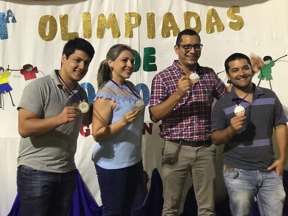 La medalla como reconocimiento entregado a los jóvenes que impulsaron la Construcción de la Costanera Hernandarias en la cual Apahe posee convenios con Itaipu que ayudan al crecimiento de la Institución, fue entregado a los Jóvenes (De izq. a der.) William Mongelós, Rossana Moral, Jhon Florentin, Foge Anzoategui quienes hace 8 años comenzaron con varias manifestaciones reuniones y hasta cierre de ruta en pedido de una Costanera.