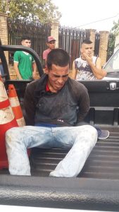 Según el informe policial de la Comisaría 22 del Barrio Don Bosco el supuesto autor del ilícito fue indentificado como Diego Damián Figueredo Giménez (19) domiciliado en el km 8 monday de Presidente Franco , quién despojo a un joven de 17 años un aparato celular apunta de un arma blanca . El hecho se registró a las 16:30 horas aproximadamente en el barrio don Bosco de Ciudad del Este. Los agentes mencionaron que acudieron al lugar del hecho y que una vez llegado al lugar ya encontraron al hombre reducido por los vecinos del lugar.