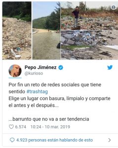 Para demostrar que efectivamente una persona realizó la limpieza, se tienen que observar las bolsas llenas de basura en la foto, según el reto que se difunde lentamente, en comparación con otros challenges.