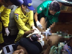La madre quien solicitó la ayuda de los bomberos, quienes acudieron hasta el km 17 llegando con retraso por causa de las malas condiciones del camino. Al momento de trasladar a la madre embarazada antes de llegar a una cuadra del Hospital Distrital finalmente da la luz en la ambulancia mismo.