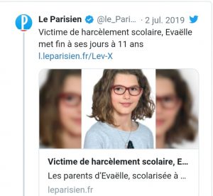 La menor comenzó el curso escolar en el colegio Isabelle-Autissier, pero comenzaron a hostigarla hasta el punto de que la familia decidió presentar una queja formal por bullying y trasladar de centro a la menor cuando acabaron las vacaciones de febrero. Sin embargo, el acoso escolar continuó en el nuevo colegio, el Georges-Duhamel, ubicado en el mismo departamento.