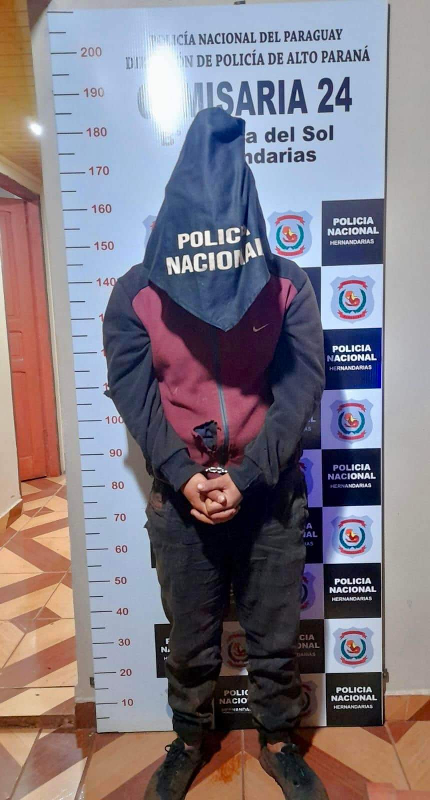 Se trata de Ángel Eduardo Garcete Arce (24), vecino del barrio San Francisco que ya posee antecedentes por hurto agravado. En esta ocasión fue privado de su libertad con relación al hurto de una máquina compresora de 50 litros, hurtada de un aserradero propiedad de Amado Antonio Ayala Cáceres (29).