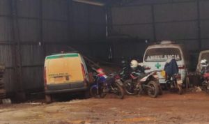 Como se puede observar en la foto ambulancia de traslado en taller sin ser reparado lo que dificultad el servicio del hospital distrital San Alberto como también de algúna emergencia en la zona para largo viaje.