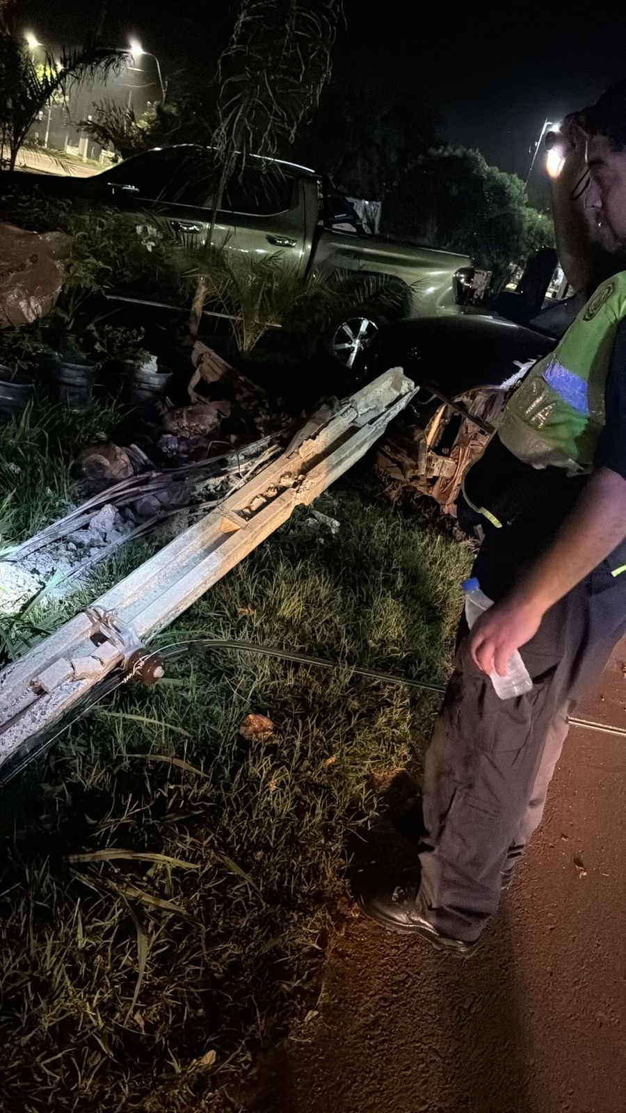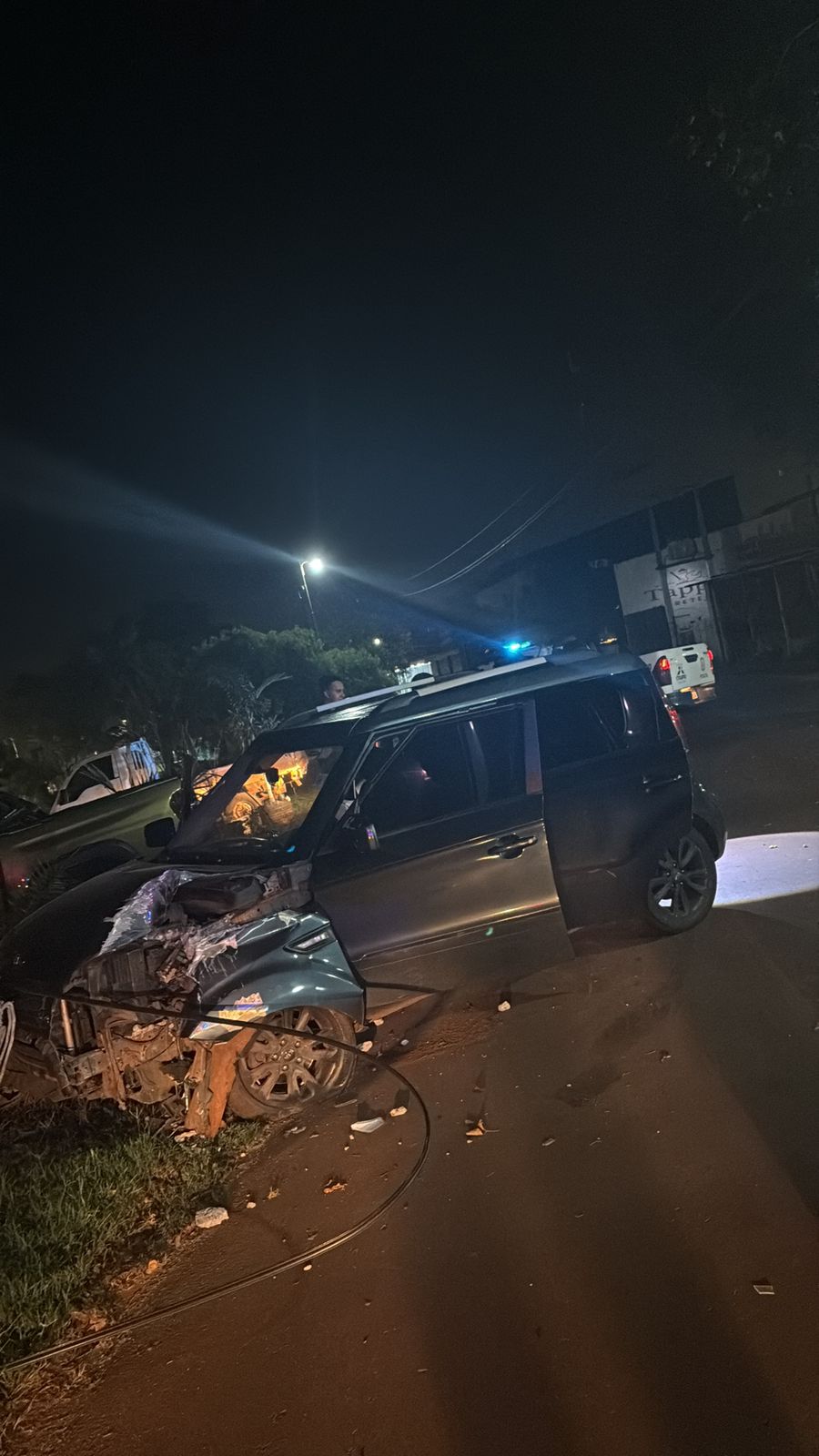 Un Vehículo de la marca Kia modelo Soul al mando de Lucas Alexis Cabral Arguello de 26 años supuestamente perdió el control en una curva cerrada donde se encuentra la florería luego de ver un control policial. El vehículo impacto por la columna de la Ande quedando en el lugar donde llega los efectivo Policial para auxiliar y verificar lo ocurrido. Se salvó de los daños una camioneta estacionada a mts del lugar.